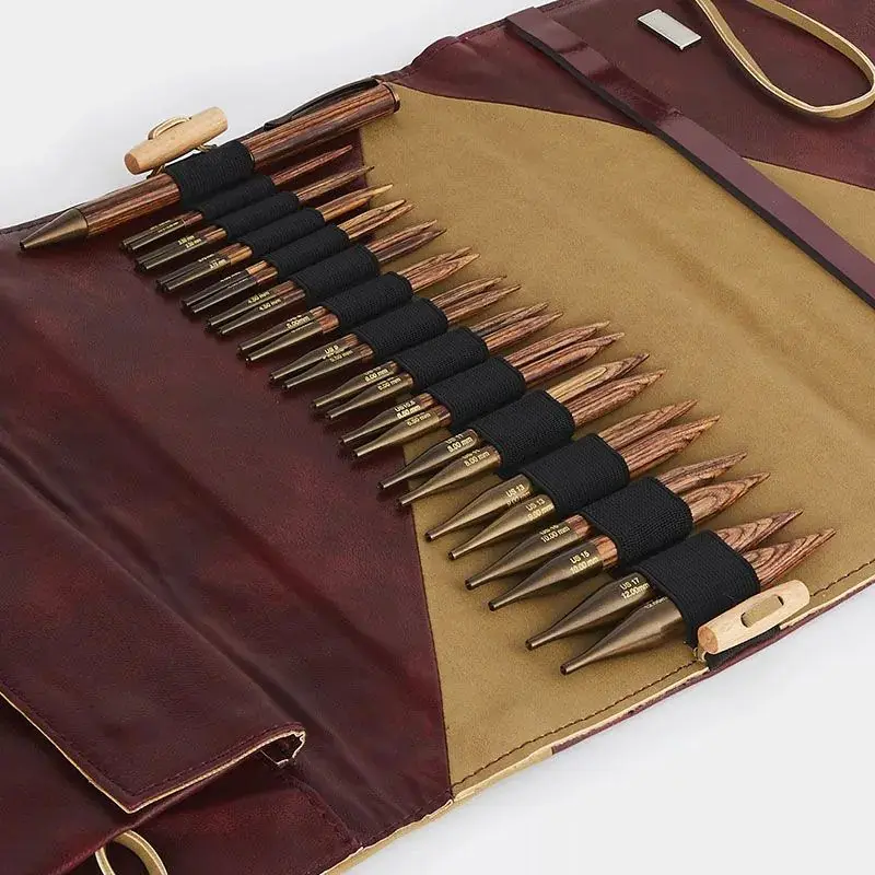 Designed for knitters of all levels, Ginger special interchangeable circular knitting needle sets include a range of needle sizes in 10cm (4”) lengths to accommodate your diverse projects. The 4-inch needle tips fit comfortably in the hands of the knitter and are preferred for circular knitting projects. Ginger interchangeable circular needles come in richly colored warm laminated birchwood that has a traditional look and feel. The tapered points are smoothly honed to perfection for easy knitting and stitch pick-ups, too! Ginger Interchangeable knitting needle sets include nylon-coated stainless steel cord combos, stitch markers, a set of magnets, and a pen for record keeping, offering a step ahead in keeping knitters organized and ready for the knitting projects.