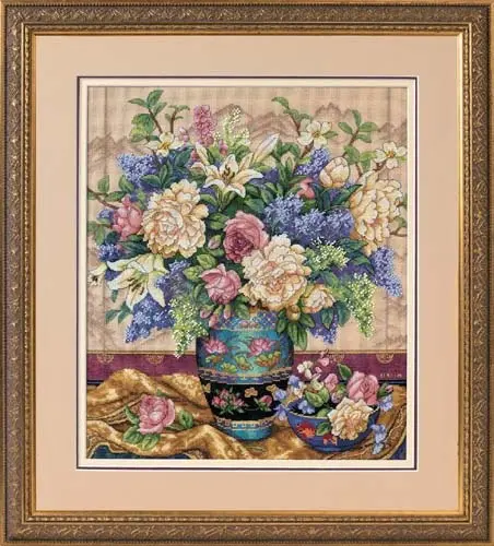 The kit contains: instruction chart, color symbol pattern, Aida 18 (beige-brown), cotton mouline Dimensions - 45 colors and a needle.