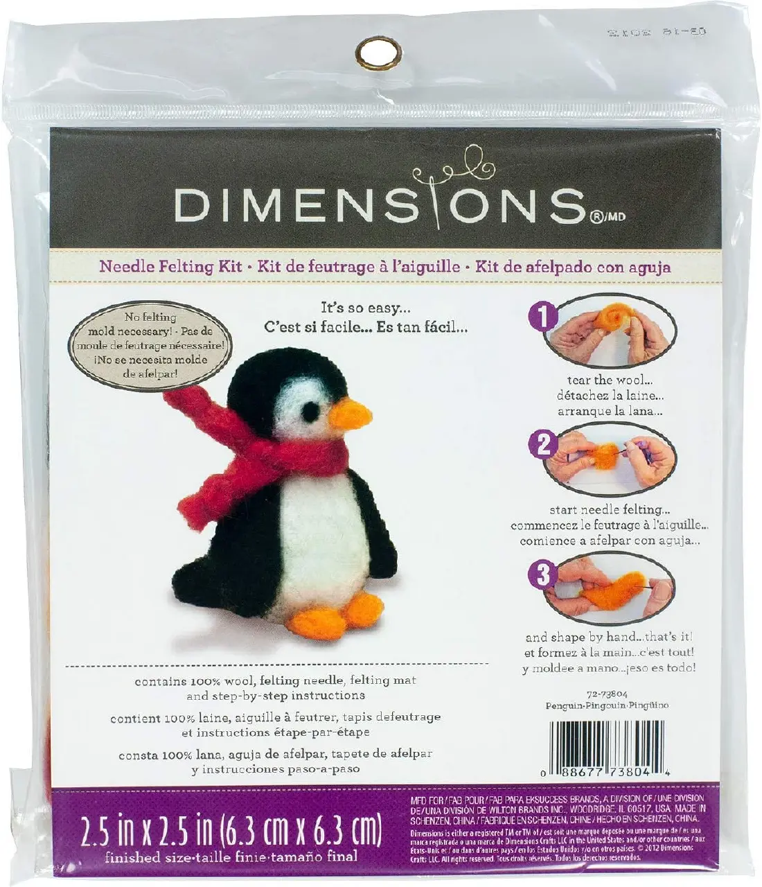 72-73804 DIMENSIONS Penguin felting kit Penguin