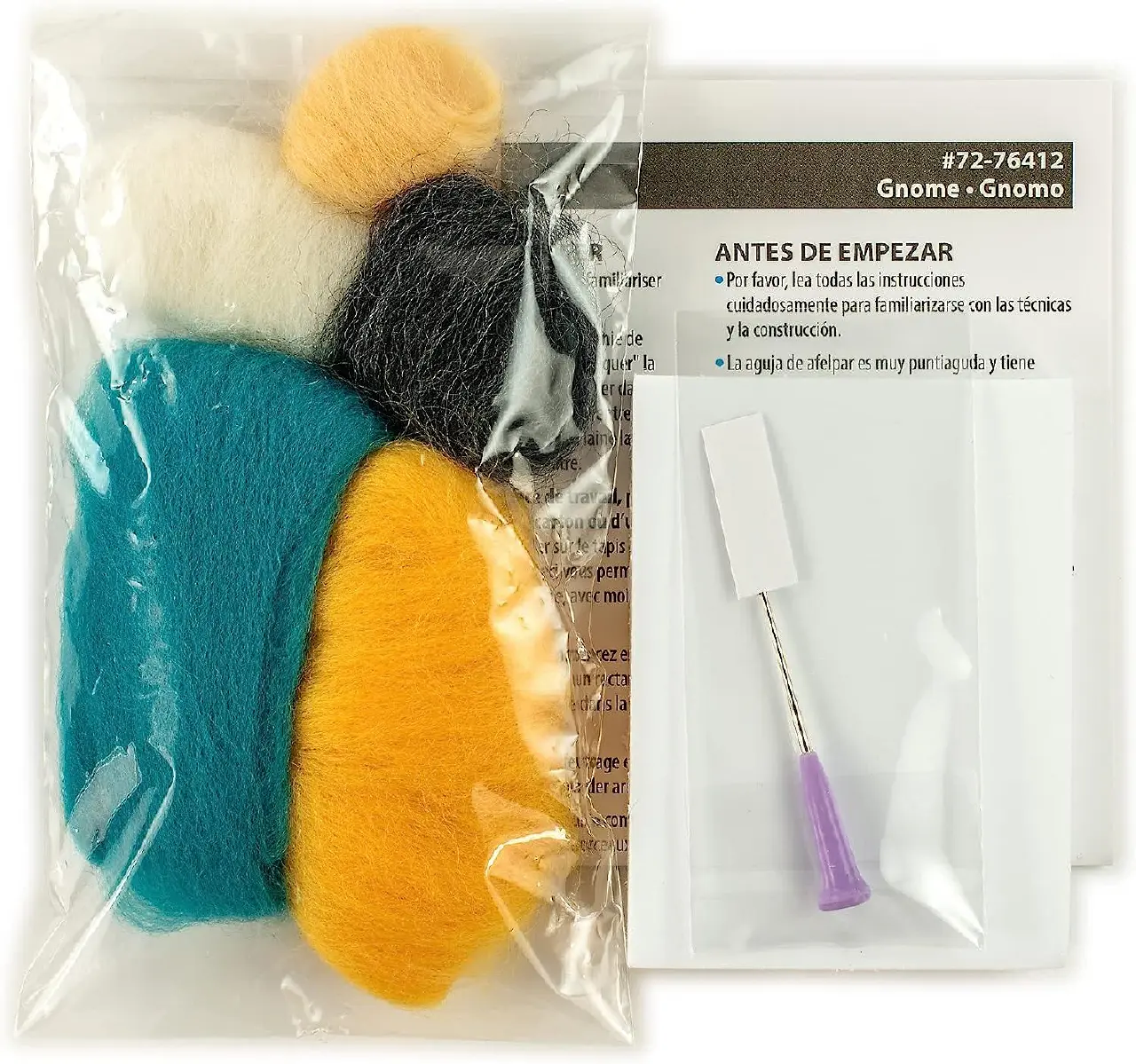 The kit includes: 100% wool, felting needle, felting mat and step-by-step instructions.