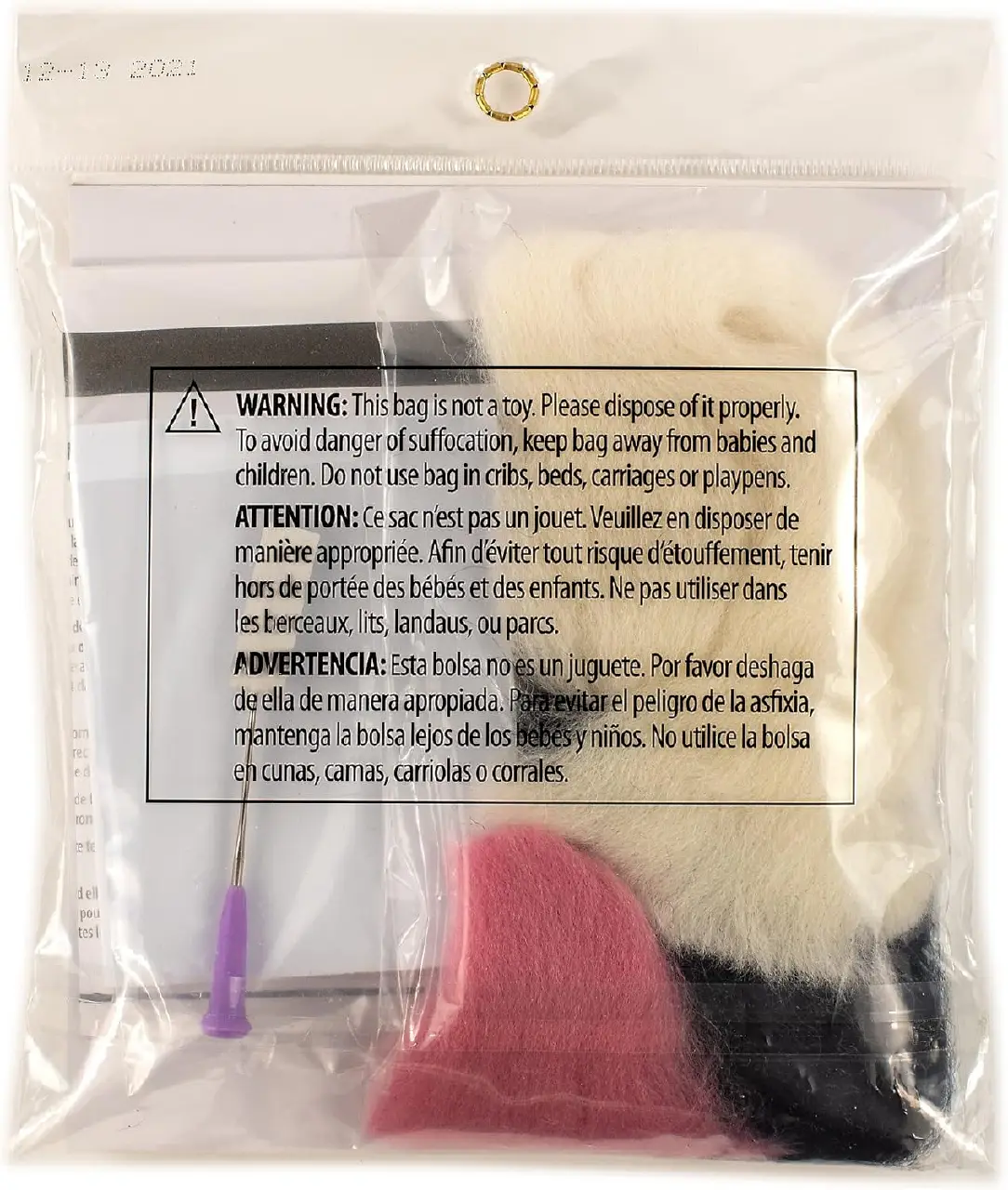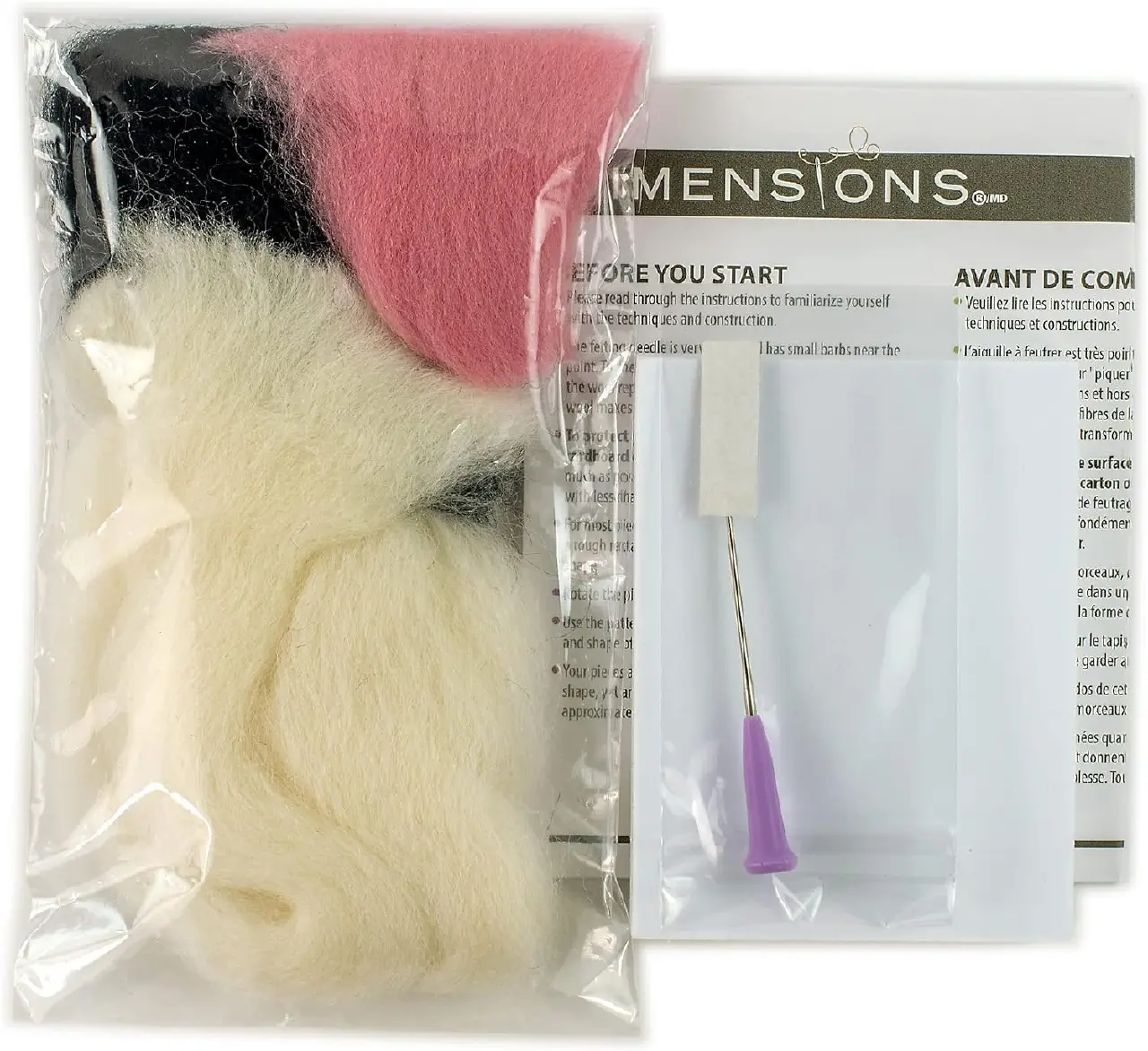 The felting kit includes 100% wool, a felting needle, a felting mat and step-by-step instructions.