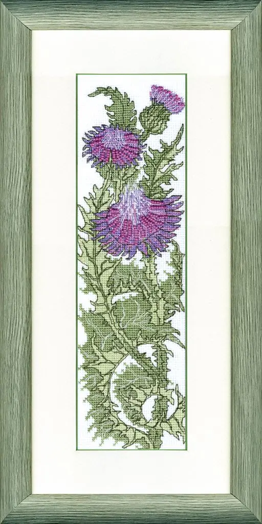 The work is stitched by cross stitch, backstitch and arched stitch.