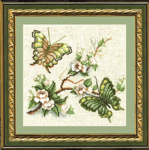 The kit contains: color cross stitch pattern, Aida 16, cotton embroidery threads and a needle.