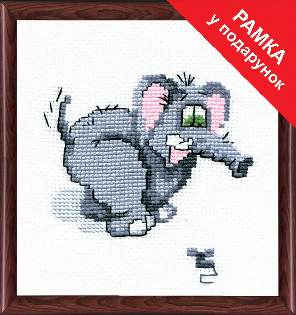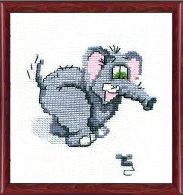 The kit contains: instruction chart, color cross stitch pattern, Aida 11, cotton embroidery threads and a needle.