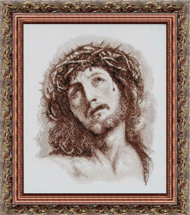 The kit contains: color cross stitch pattern, Aida 16, cotton embroidery threads and a needle.