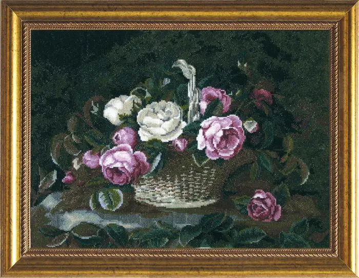 The kit contains: color cross stitch pattern, Aida 16, cotton embroidery threads and a needle.