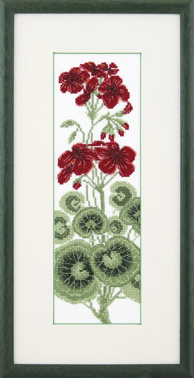 The kit contains: instruction chart, color cross stitch pattern, Aida 16, mouline Madeira - 5 colors, Preciosa beads - 3 colors and needles.