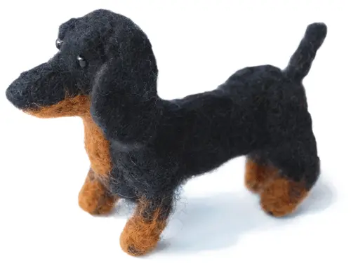 The kit contains: color pattern, instruction chart, Corriedale wool – 2 colors, felting needles – 2 pieces, beads for eyes.
