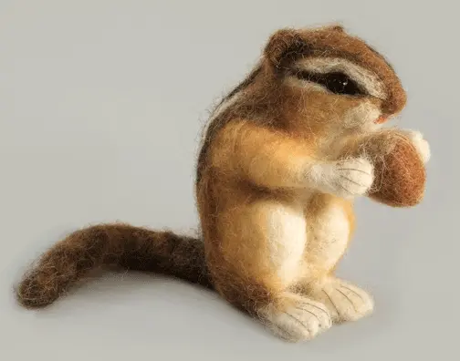 The kit contains: color pattern, instruction chart, Corriedale wool – 4 colors, felting and embroidery needles, Preciosa beads and seed beads, mouline Madeira of 1 color, pipe cleaner.