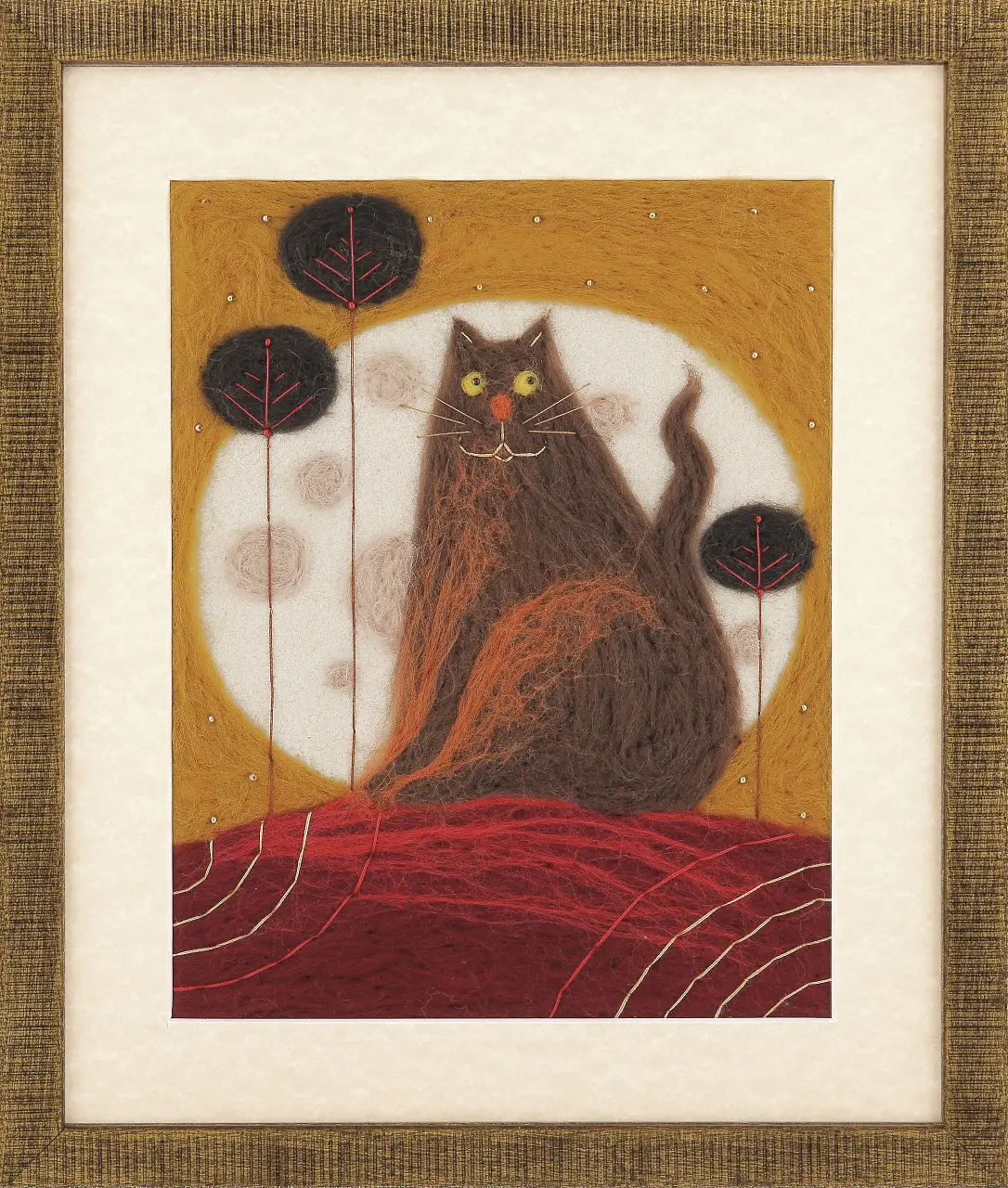 The kit contains: instruction chart, color pattern, felt with printed picture (the basis), wool - 8 colors, mouline Bestex - 4 colors, Preciosa beads - 3 colors, needles for felting and for stitching.
