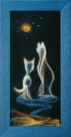 The kit contains: instruction chart, felt, wool (New Zealand) - 8 colors, felting needle.