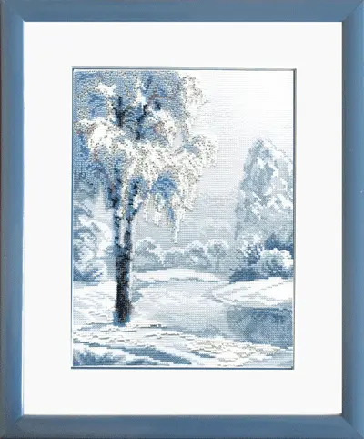 The kit contains: color cross stitch pattern, instruction chart, Aida 14 Zweigart, mouline Madeira – 8 colors, Preciosa beads – 7 colors and needles.