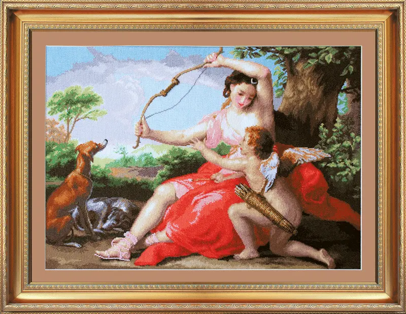 The kit contains: color cross stitch pattern, instruction chart, Aida 14 Zweigart, mouline Madeira - 43 colors (11 of them are melange), Preciosa beads – 8 colors and needles. Stitching techniques are one and two threads with “cross”, “semi-cross” and “back needle” stitch.