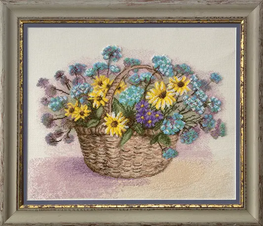 The kit contains: color cross stitch pattern, instruction chart, Aida 14 Zweigart, mouline Madeira – 23 colors, Preciosa beads – 5 colors and needles. Stitching techniques are beads, “cross” and “back needle” stitch.