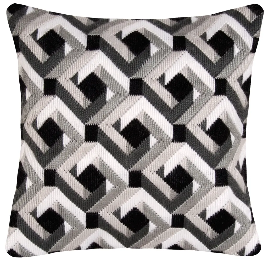 The kit contains: instruction chart, stramin with printed picture (34ct/10cm), acrylic threads - 5 colors and a needle.