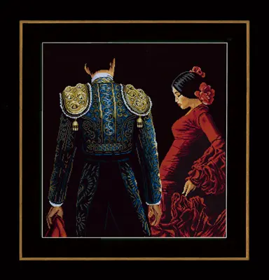 the kit contains: instruction chart, symbol pattern, Aida 14 (black), cotton mouline DMC - 24 colors and a needle.