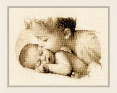 The kit contains: instruction chart, symbol pattern, Aida 14 (light-beige), cotton mouline DMC - 9 colors and a needle.
