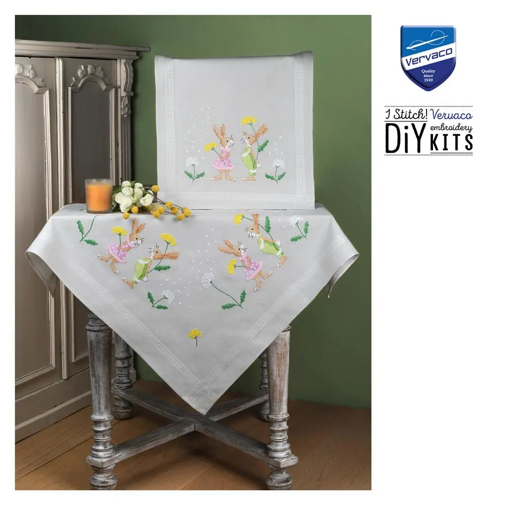 PN-0196673 Cross stitch kit (tablecloth) 80x80cm Vervaco Easter bunnies