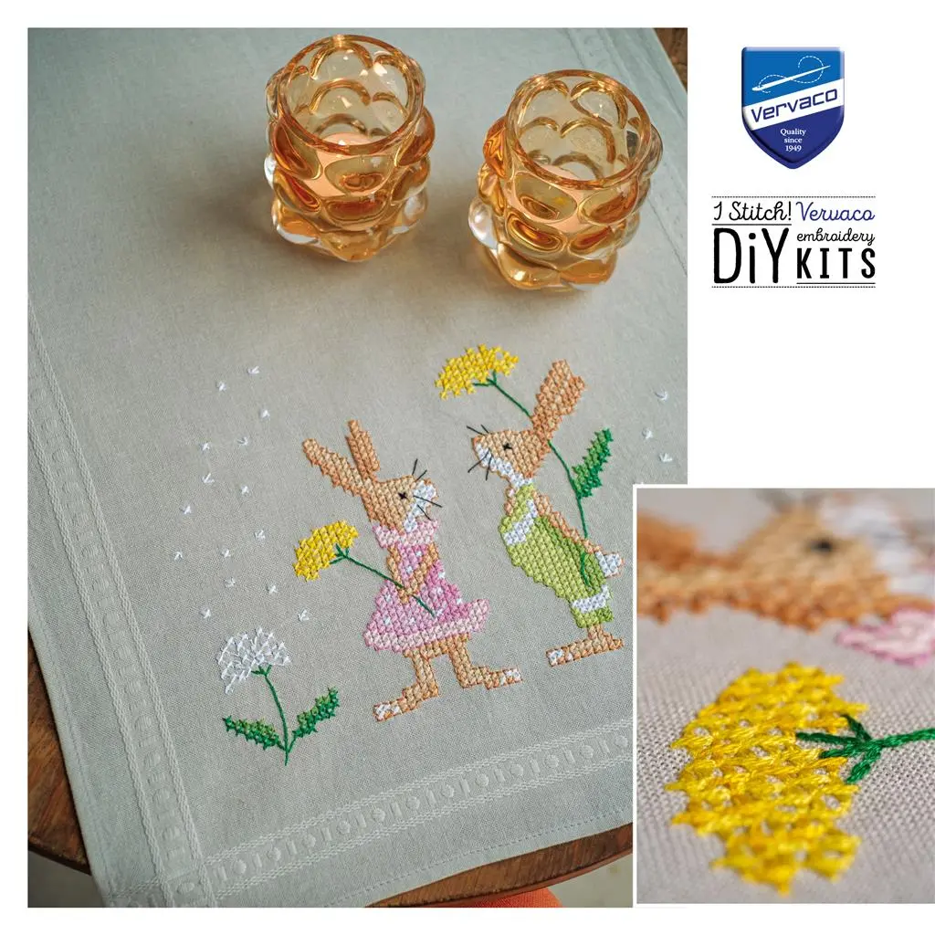PN-0196679 Cross stitch kit (table runner) 400x100cm Vervaco Easter bunnies