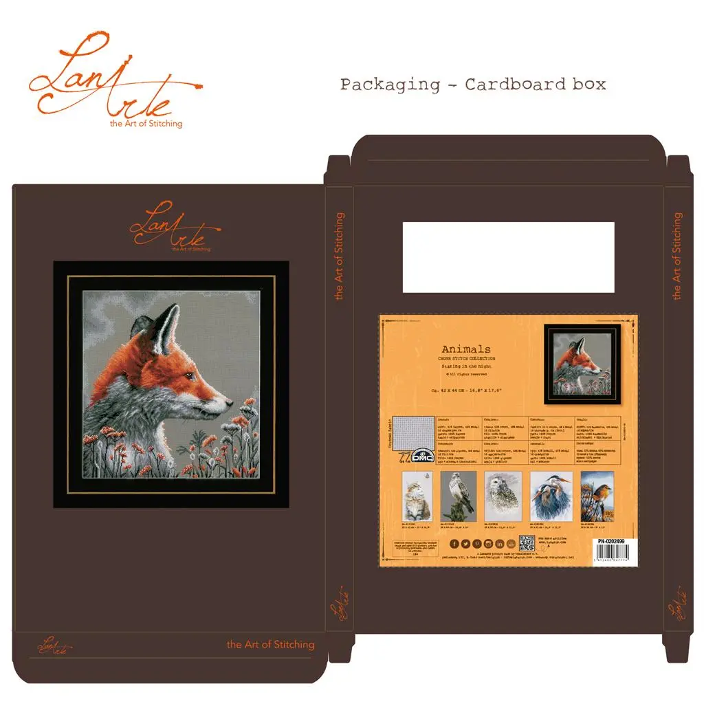 Counted Cross Stitch Kit with Chart, Embroidery Fabric: 52% cotton - 48% modal, Yarn: 100% cotton DMC, Evenweave 10 threads (5 stitches)/cm Yarn organizer, Instruction in eight languages, Large-square charted design, Needle, Frontsheet picture, ca. 42 x 44 cm / 16.8" x 17.6", Age category: from 18