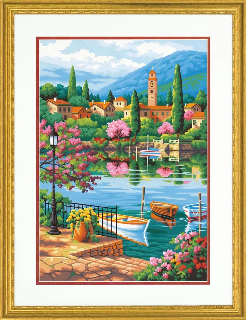 73-91661 Набор для рисования красками по номерам Village Lake Afternoon "Сельское озеро" Dimensions. Catalog. Kits