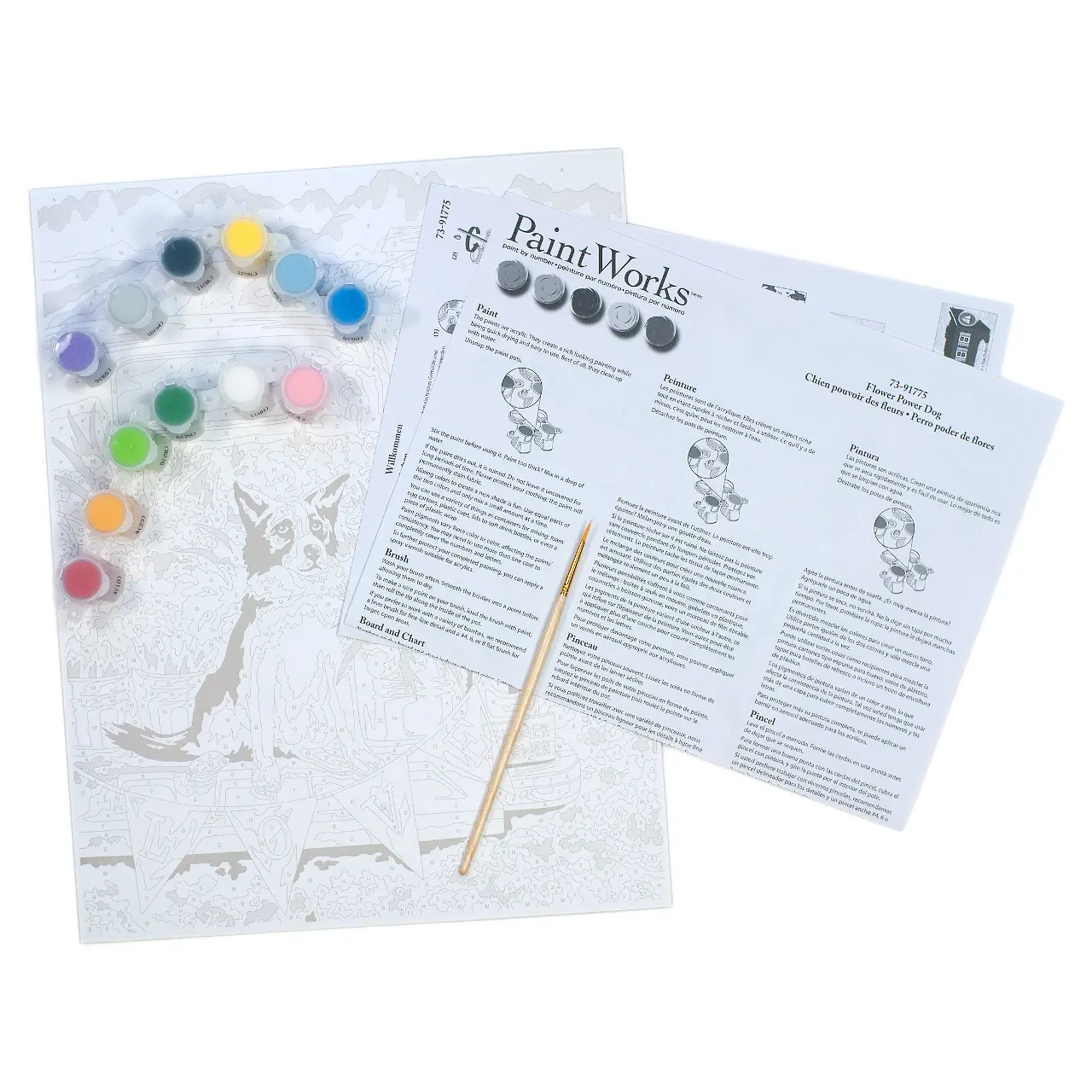 73-91775 Набор для рисования красками по номерам Flower Power Dog "Собака цветочник" Dimensions. Catalog. Kits