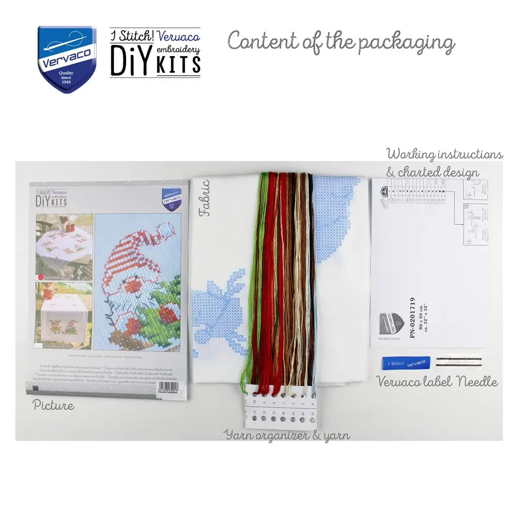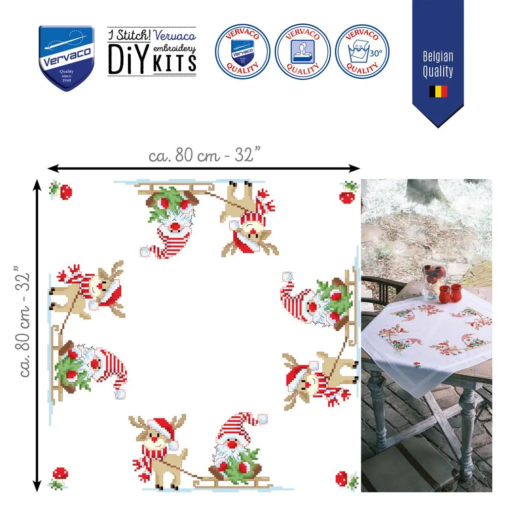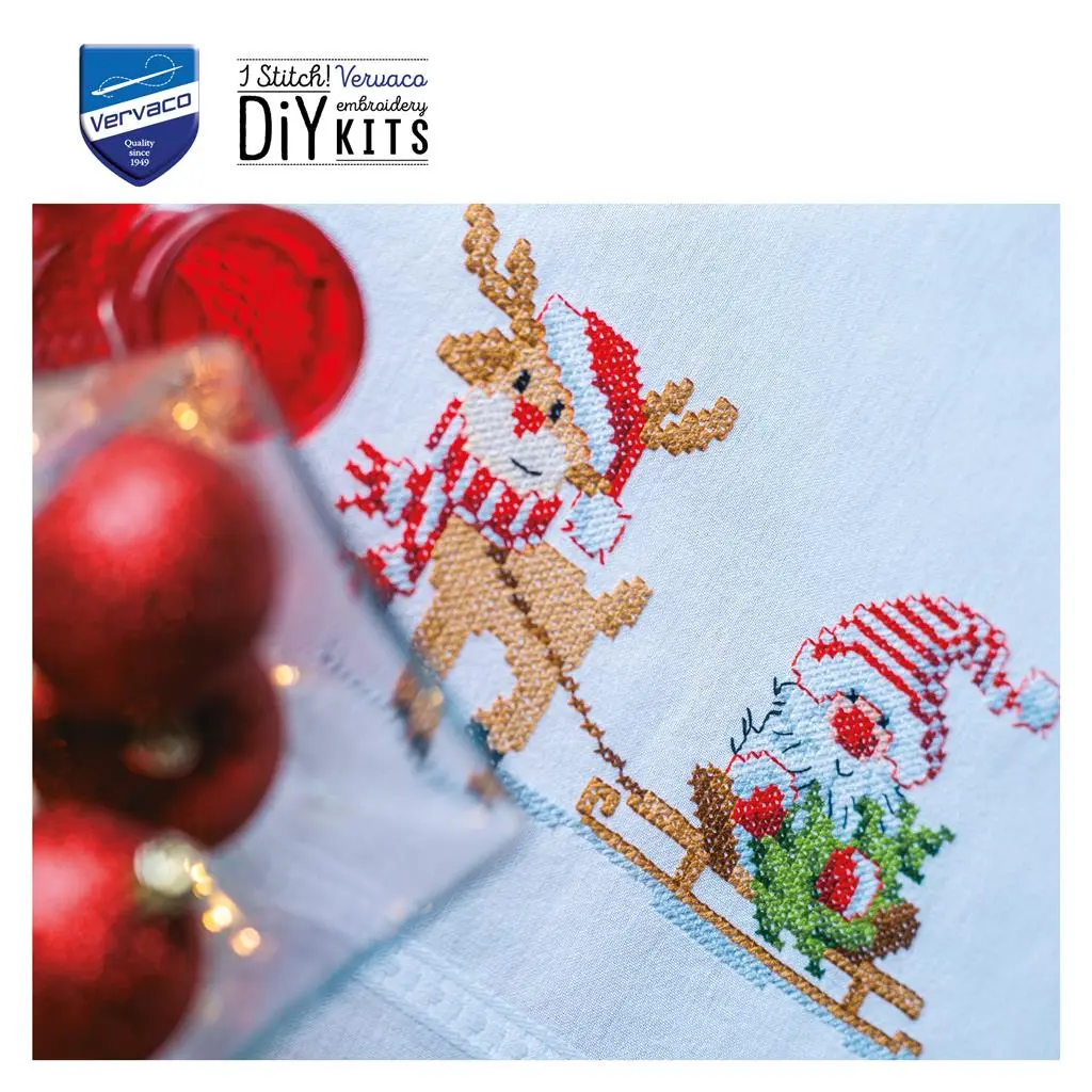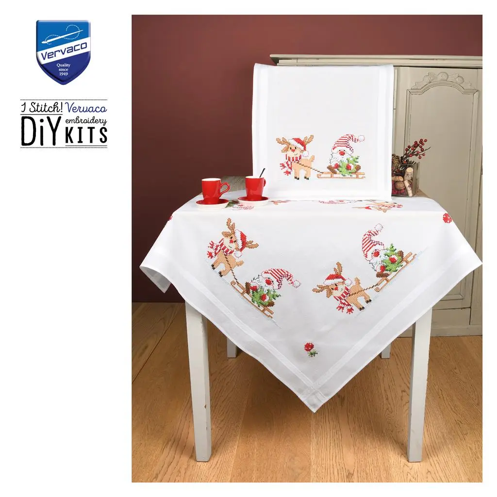PN-0201719 Набір для вишивання хрестом (скатертина 80х80) Vervaco Олень з гномом. Catalog. Kits