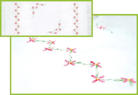 The kit contains: color cross stitch pattern, instruction chart, napkin, mouline Anchor – 3 colors, satin ribbon (Spain) – 2 colors and needles.